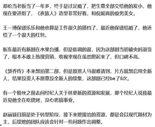 娱乐圈周五爆料的明星,让我们看到了明星们不为人知的一面。从绯闻、丑闻到公益、跨界,每一个爆料都让我们对明星有了更深入的了解。在这个充满变数的娱乐圈,明星们要想立足,不仅要靠实力和才华,还要学会面对舆论风波。让我们一起期待,下周五娱乐圈又将爆出哪些精彩爆料吧!